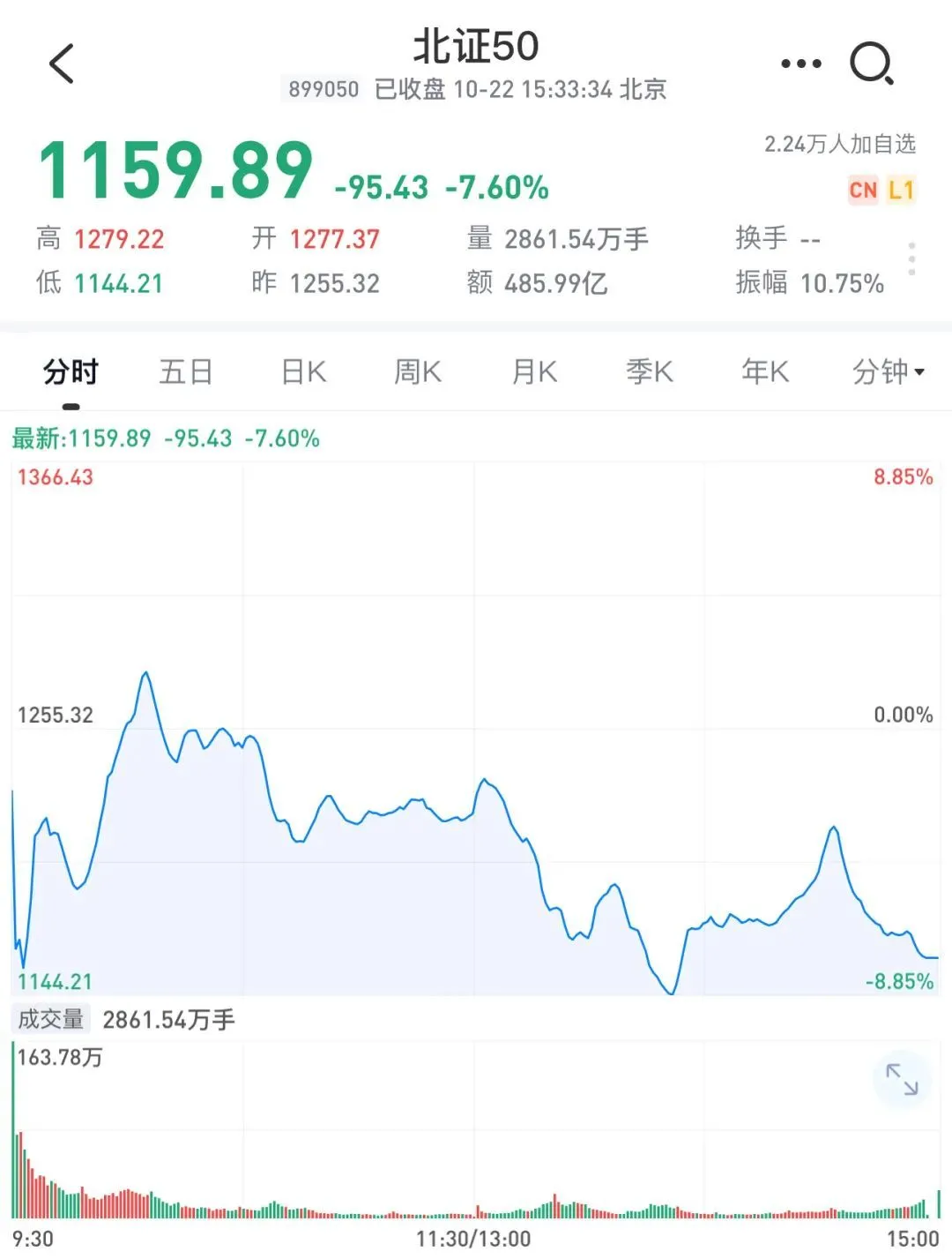 北证50指数迎来疯狂过山车行情。