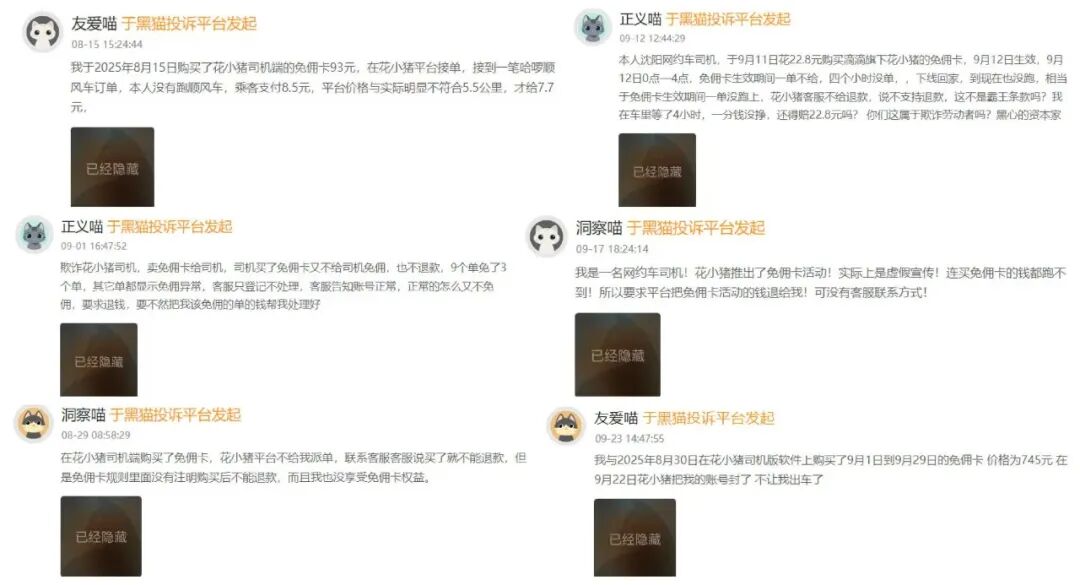 司机群体面临的生存压力,最终可能传导并转化为乘客服务体验的下降。在黑猫投诉平台关于花小猪的投诉中,“司机临时加价”“服务态度差”“接单后被取消”等关键词反复出现,暴露出司机群体在高压下的服务变形。