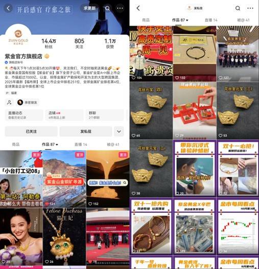 为迅速承接并转化已触达的潜在客群,入局初期,紫金黄金将涨粉作为短视频和自播间运营的关键指标,通过展示矿山开采、冶炼加工等上游环节,以及品牌领导出席行业大会的记录等品宣向内容,将抽象的品牌实力转化为具象的视觉呈现,进一步夯实用户信任,将“流量”转化为“留量”。
