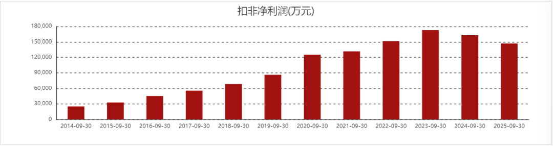 业绩报告显示,2025年前三季度,九州通实现营业收入1193.27亿元,同比增长5.2%;归母净利润19.75亿元,同比增长16.46%;扣非净利润为14.7亿元,同比下滑9.8%。