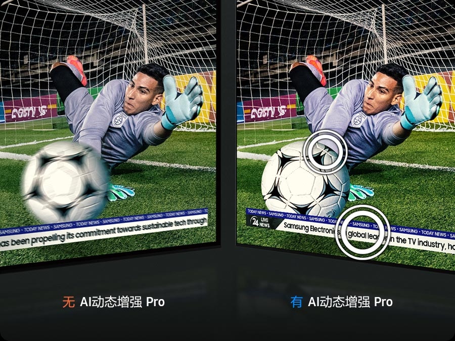 例如,在观看体育赛事时,三星AI电视的AI动态增强技术会自动增强运动画面的流畅度,精准减少快速移动画面的拖影,让球迷看清每一个精彩瞬间;而在观看电影时,AI影像增强技术可以将非8K片源的细节和纹理提升至接近8K分辨率,让老片源焕发新生;自动HDR画质重构和色彩增强器技术能自动调整色彩和对比度,精准还原导演想要呈现的艺术氛围,让客厅秒变私人影院。作为“配套”,在声音方面,三星AI电视的自适应音效Pro技术能识别对话、背景音乐等声音类型,并根据房间声学环境进行定制化优化;音画追踪OTS Pro技术,能够从电视各个位置发出动作跟踪音效,实现声音跟着画面走的沉浸体验,配合智能控声AVA和杜比全景声技术,能够呈现清晰对话和沉浸式立体音效。
