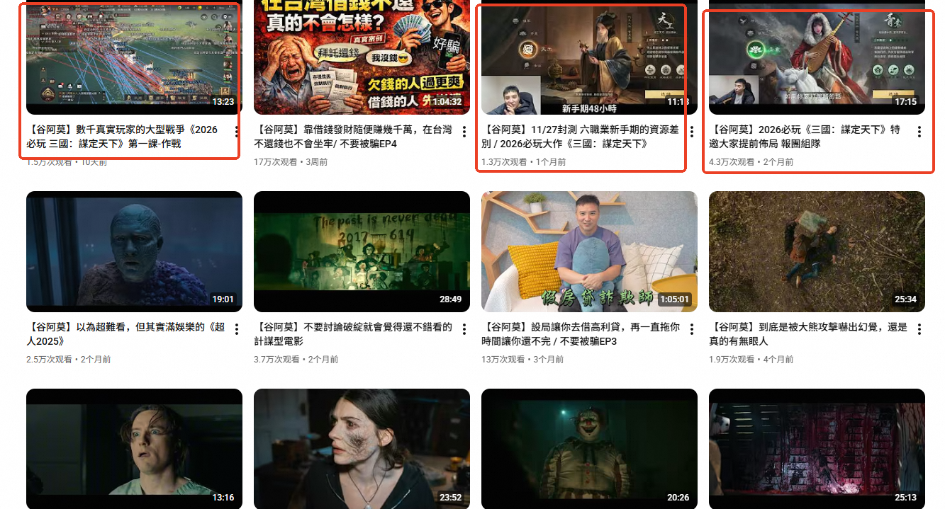 而且,爆料粉丝近一步查阅谷阿莫的相关账号,发现这并不是谷阿莫第一次为《三谋》这款游戏站台。谷阿莫海外账号显示,在他最近密集发布的视频中,多次提及该游戏,并向其粉丝群体公开推荐,明显存在商业合作痕迹。此次公开参与《三谋》活动,或坐实与该游戏的合作关系。