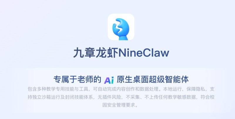 3月16日,好未来正式发布行业首款专为教师群体打造的AI原生桌面超级智能体——九章龙虾(NineClaw),昵称为“九龙”。这款“龙虾”类创新产品,定位为开箱即用的AI助手,深度融合好未来的教研能力与题库积累,通过自然语言驱动系统,让教师能够在零配置状态下自动完成数据处理与多模态内容创作,所有运算均在本地运行,支持独立沙箱运营及封闭技能体系,符合校园安全管理要求,在保障隐私安全的同时高效交付办公成果,相当于老师们的“私人助理”。