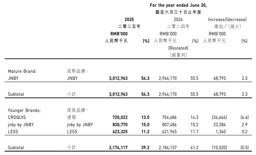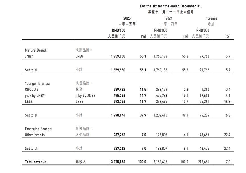 财报显示,2025年下半年,江南布衣JNBY、jnby by JNBY、速写品牌营收分别为18.6亿元、4.95亿元以及3.89亿元,分别同比增长5.7%、4.1%和0.4%。