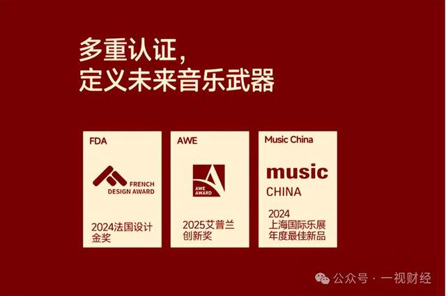 工业设计的溢价逻辑:赛博吉他通过设计语言的重构,突破了传统乐器的形态边界。更具未来感的工业设计,使其在演奏属性之外,具备融入居住空间的视觉与陈列价值。该产品于2024年获得French Design Award,从设计美学与功能融合的维度,验证了这一产品路径的可行性。