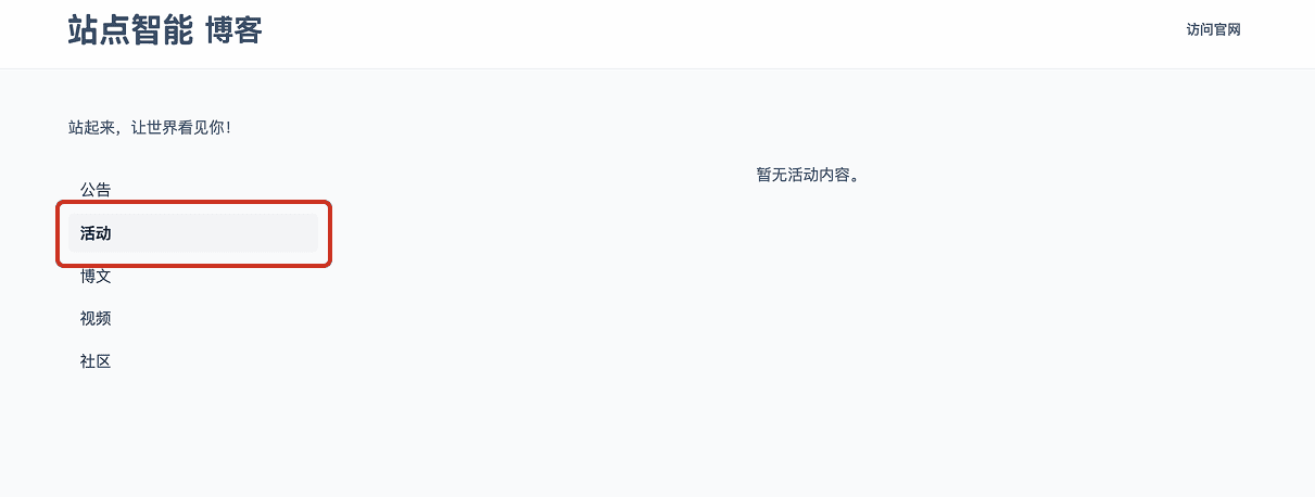 2. 扩展与预留新栏目 为了容纳未来更多元化的文章分享,我们将原有的“日志”栏目,正式扩展为更具包容性的“博文”栏目。同时,我们预留了“活动”栏目,该栏目未来将自动读取并展示在营销枢纽后台所创建的线上线下活动。