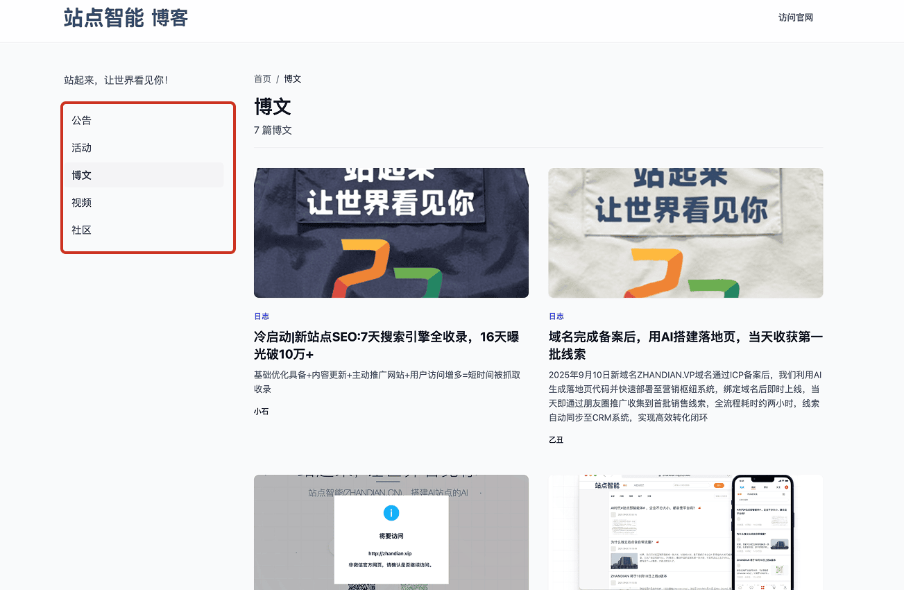 通过这次升级,站点智能官方博客已经从一个单纯的图文发布平台,演变成一个集博文、视频、活动预告和社区入口于一体的综合内容枢纽。我们相信,一个内容更丰富、导航更清晰的博客,能为每一位来访者提供更大的价值。