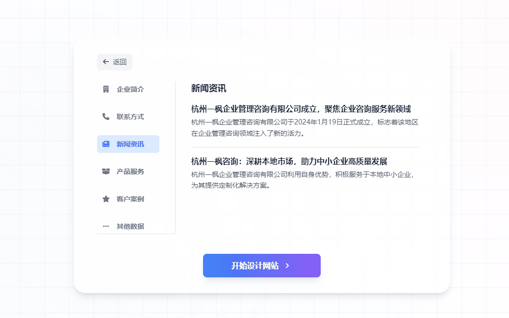 新闻资讯传递企业动态,初始生成 2-3 条基础资讯,可补充 “最新活动”“行业观点”,提升站点活跃度: