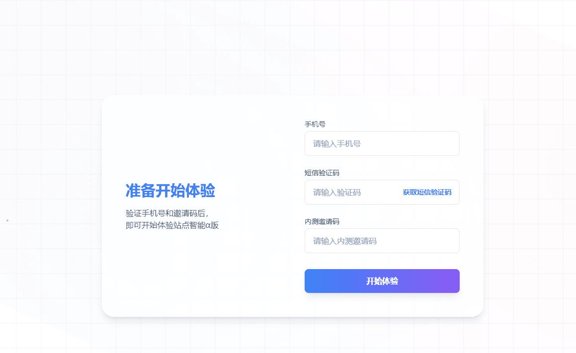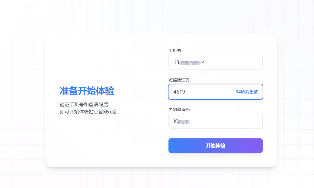 A:完成手机号 + 邀请码验证后,系统会提示 “开始体验”,此时已成功进入内测,也可关注 “站点智能” 公众号,接收内测进度通知。
