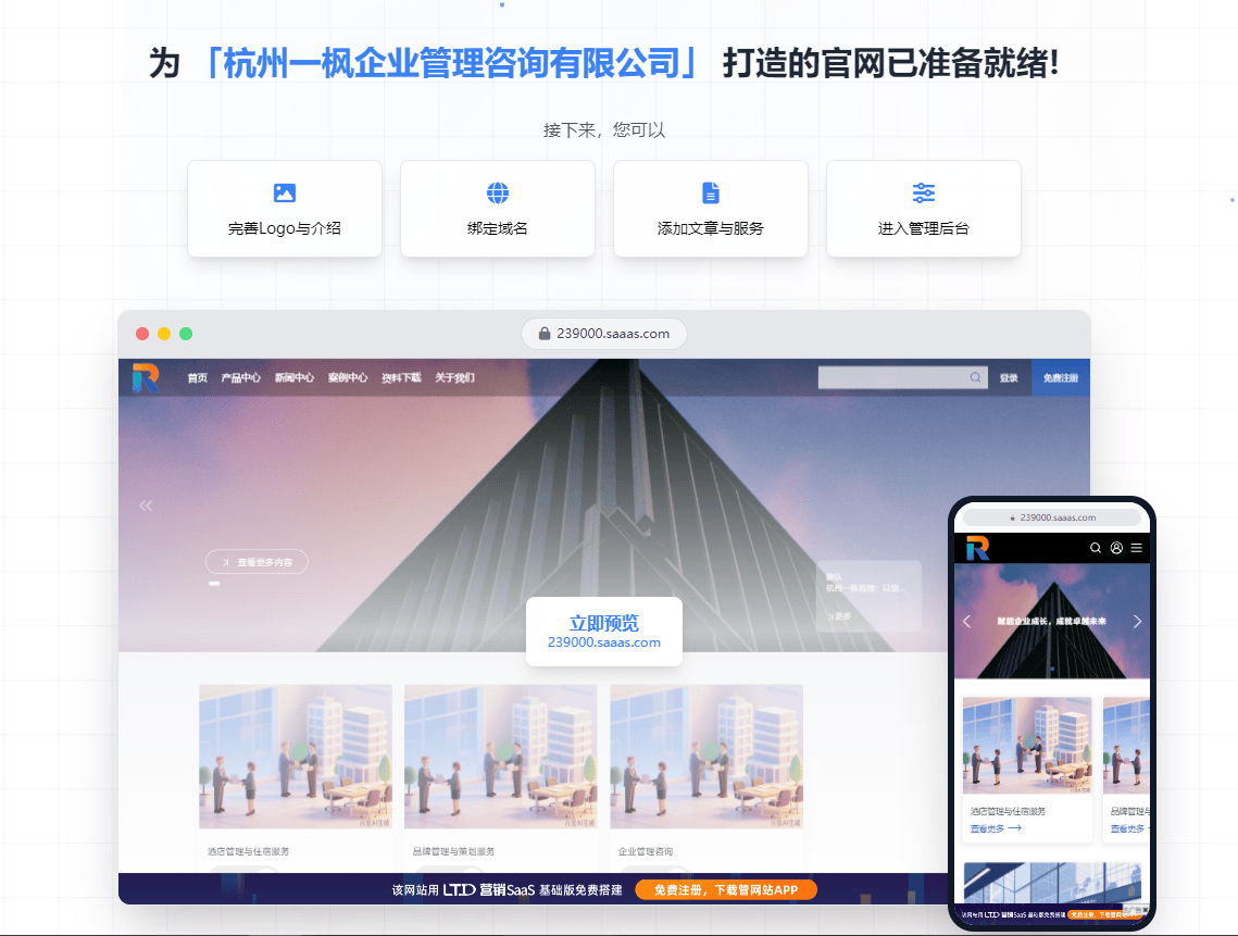 部署完成后,点击 “立即预览” 进入临时域名查看站点 ,支持个性化设置。
