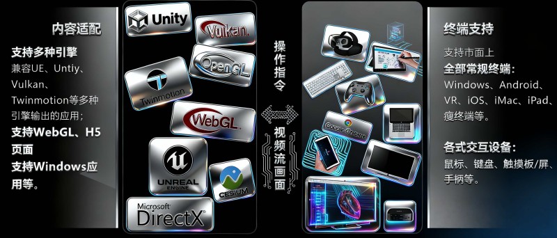 l全引擎支持:除深度兼容UE、Unity等主流游戏引擎外,更率先支持Vulkan、WebGL以及3ds Max、CAD等专业软件,实现了真正的“全应用流化”。