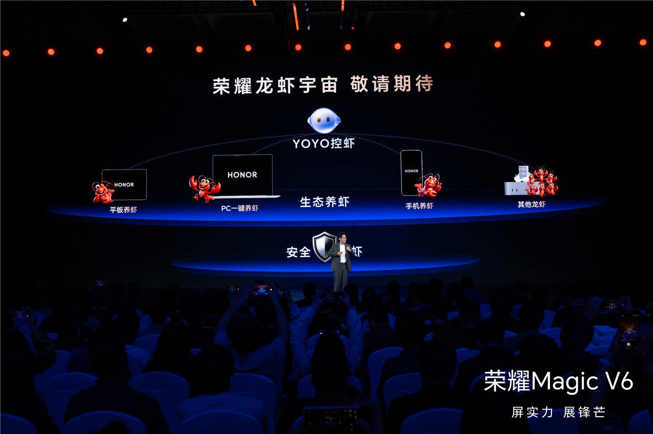 发布会临近收尾,荣耀直接扔出一个全网刷屏的趣味彩蛋:荣耀龙虾宇宙(OpenClaw)。荣耀全新的AI智能体生态,YOYO龙虾(语音控虾)、生态养虾(全设备联动)、安全养虾(隐私兜底)。官方已经确认,近期就会陆续开放内测。
