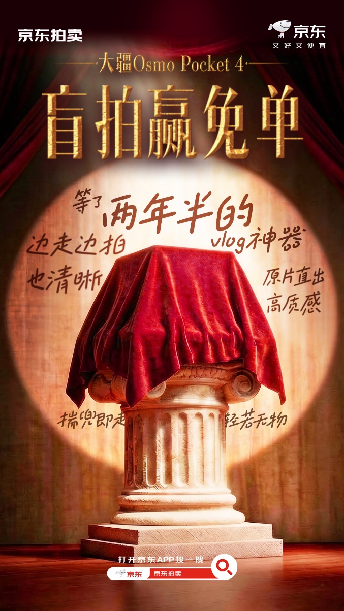 4月9日晚8点,大疆官宣最新一代重磅新品Pocket4即将发售,京东拍卖将率先开启重磅新品“盲拍赢免单”活动。在大疆官网未发布价格、全网未发售的空白期,京东拍卖用“盲拍+免单”的博弈玩法,让每一位参与者都成为“价格预言家”。