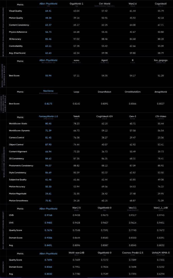 ABot-World:在物理合规性、动作可控性、零样本泛化三大维度均达SOTA