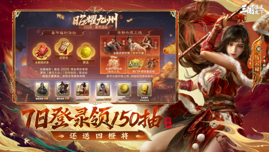 开服前七天更是福利满满,免费送抽卡券、黄金、橙将和战法。抽卡券可以用来抽取更多的武将,说不定就能抽到自己心仪的强力橙将。黄金在游戏里用途广泛,可以购买各种道具和资源。