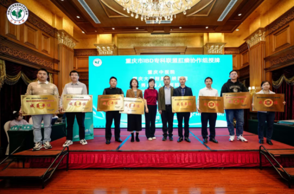 在大会的授牌仪式环节,重庆市人民医院郭红主任正式授予我院“重庆市炎症性肠病专科联盟肛瘘协作组成员单位”牌匾。