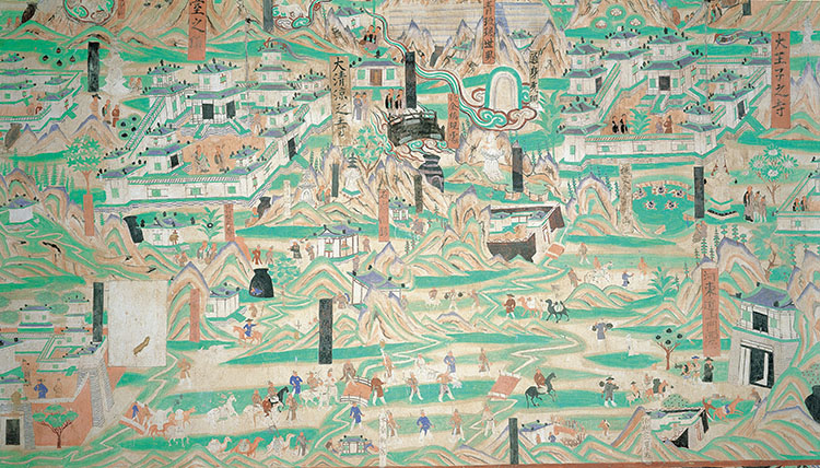 当莫高窟61窟的《五台山图》与某射击游戏的沙漠地图出现在同一屏幕,人们惊讶地发现:壁画中凌空飞舞的飞天,竟与游戏里腾空跳跃的角色姿态奇妙重合;洞窟壁画上的狩猎场景,与游戏中的战术突袭有着异曲同工之妙。