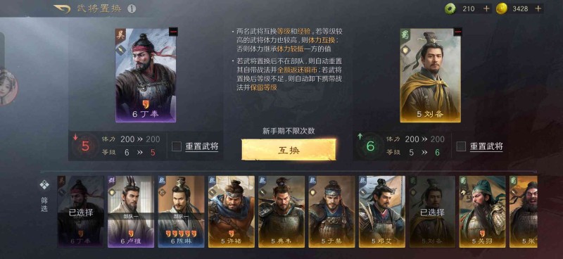 其抽卡系统更是诱人,橙卡概率高达8%,20抽就保底,前七天有125抽和2480黄金免费送。第二天登录送孙策,第七天送貂蝉,就算不花一分钱,也能拥有强力阵容。而且用免费铜币就能进行武将等级置换和战法重置,哪怕是新手玩家不小心练错队伍,也能轻松调整,非常适合学生党。