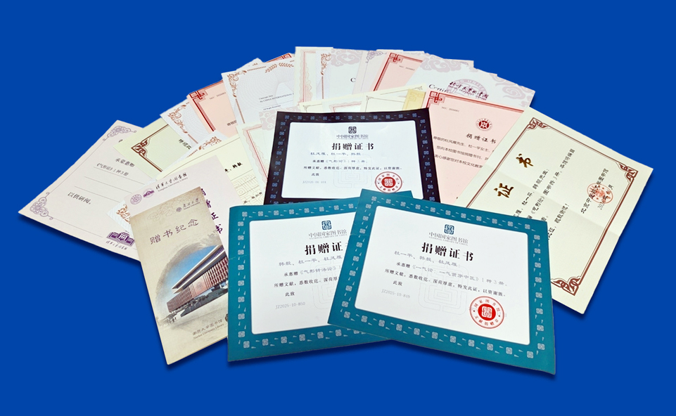 国家图书馆等二十余家中外图书馆签发的收藏证书