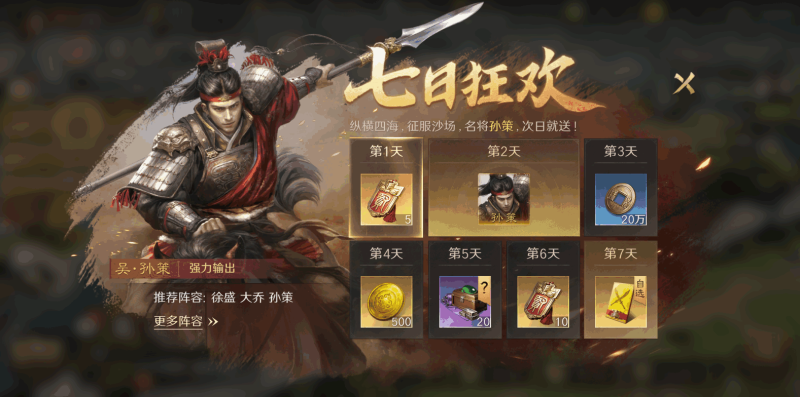 攻城时的预约集结机制更是人性化,设定好时间就能离线参与,再也不用熬夜守点。对于新人玩家来说,福利堪称"焦虑粉碎机"。创角即可领橙将徐盛,次日能得到孙策,七日更是狂送125抽和2480黄金,累计签到还能解锁貂蝉,青玉印兑换高价值道具让资源获取稳稳当当。8%的橙卡概率加上20抽保底,武将等级随意置换、战法重置仅耗铜币,彻底消除了"练错重来"的时间焦虑,让玩家在策略博弈中找回松弛感。