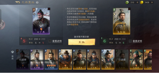 最让我觉得贴心的是武将等级无损置换。在很多策略游戏里,换武将就意味着之前的培养都白费了,得重新开始,这试错成本太高了。但在《三国:谋定天下》里,武将等级可以无损置换,你可以大胆地尝试不同的武将搭配,不用担心之前的投入打水漂。