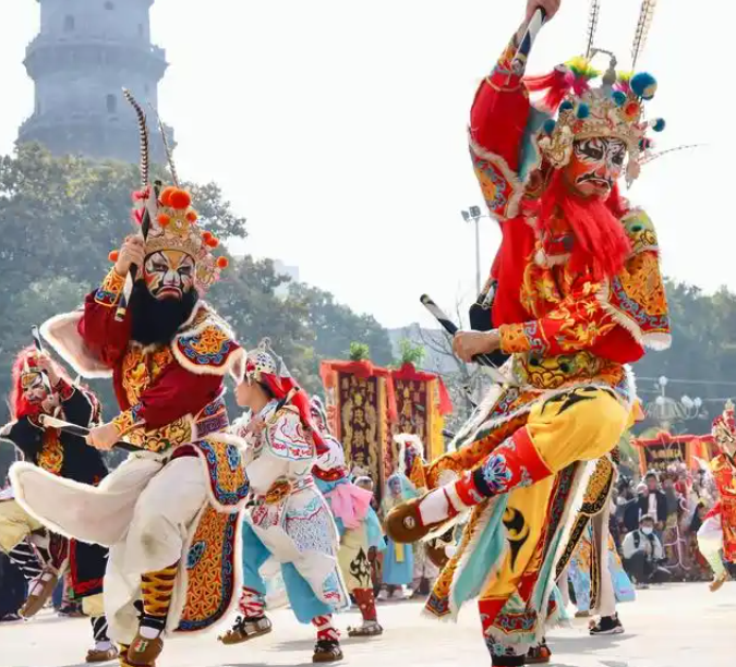 英歌舞的魅力,藏在它厚重的历史底蕴里。作为国家级非物质文化遗产,它起源于傩舞,融合了武术、舞蹈和戏剧元素,角色多取材于《水浒传》的梁山好汉,每个脸谱都有独特寓意——红脸代表忠勇,黑脸象征刚直,白脸则是智勇双全。
