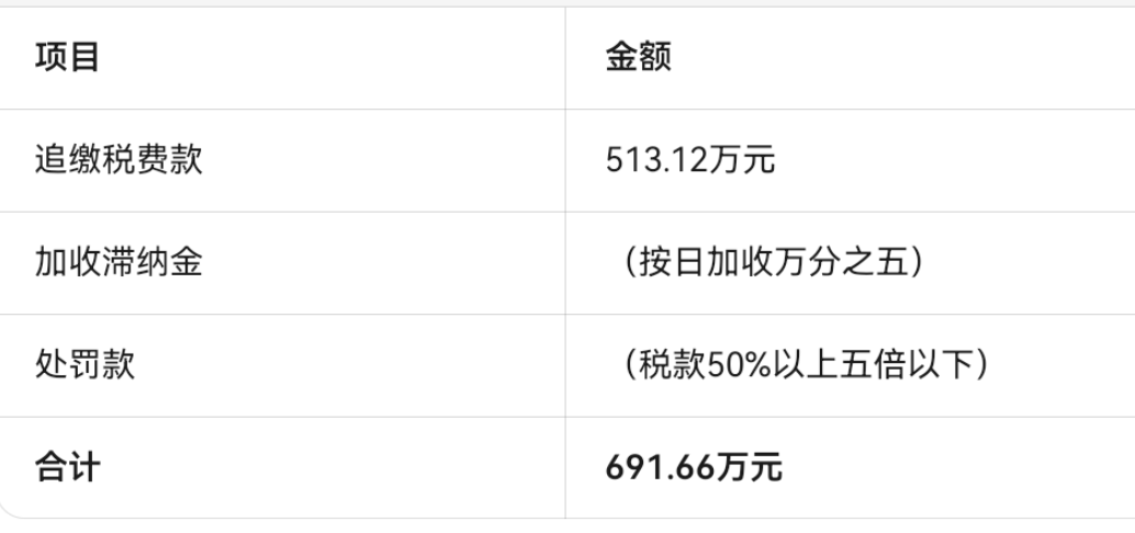 - 处罚结果:追缴税费款、加收滞纳金并处罚款共计691.66万元