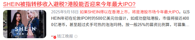 从更长的周期来看,Shein从2023年赴美上市受阻,到2024年伦敦上市停滞,再到2025年赴港上市卡壳,其上市困境或许并非个案,更是跨境企业在全球税收规则重构期的缩影。这场围绕税收与上市的博弈,也考验着企业对“税收公平”的理解。税收不仅是企业成本,更是对生产地、市场地的利益回馈,也唯有让税收与价值创造相匹配,才能在全球化浪潮中走得更远。而Shein未来如何选择,或将成为中国出海企业合规转型的重要参照。